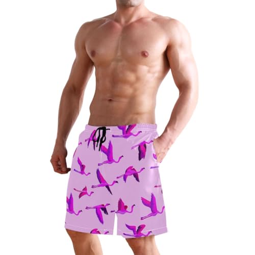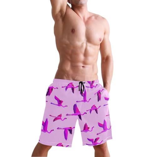 HOT ! Cute Flamingo Pink Mens Swim Trunks Quick Dry Beach Shorts with Pocket S 2302533