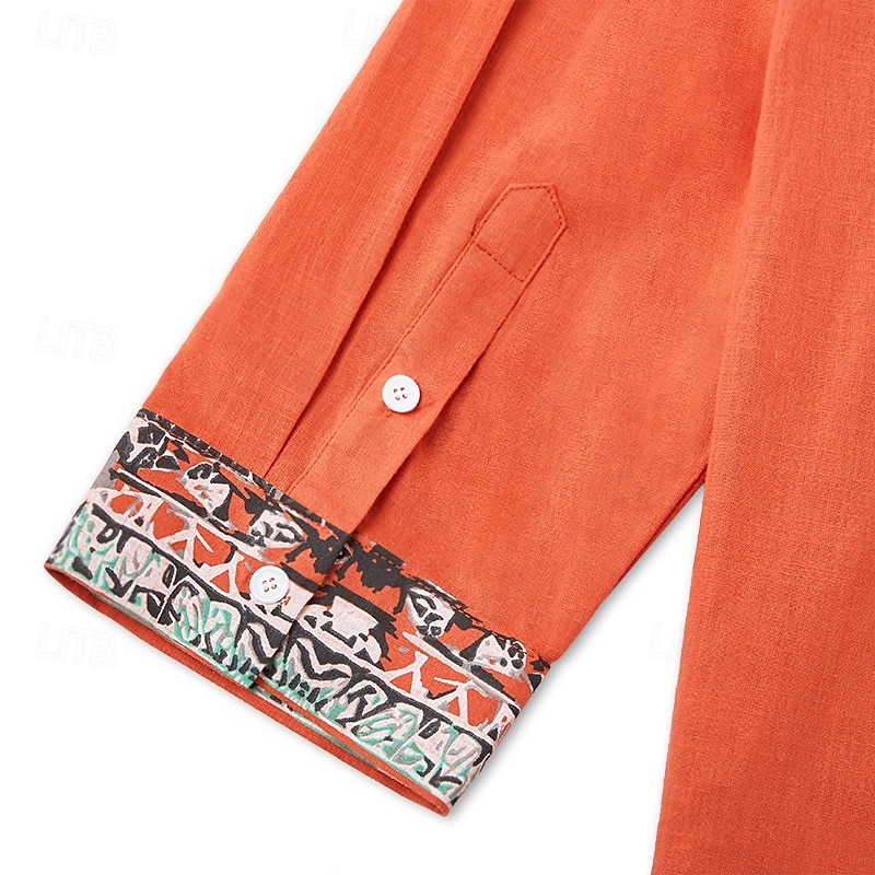 Men's Popover Shirt Summer Shirt Beach Wear Vintage Shirt Ethnic Shirt Floral Vacation Holiday Yellow Blue Orange Brown Long Sleeve V Neck Summer Spring Clothing Apparel 13