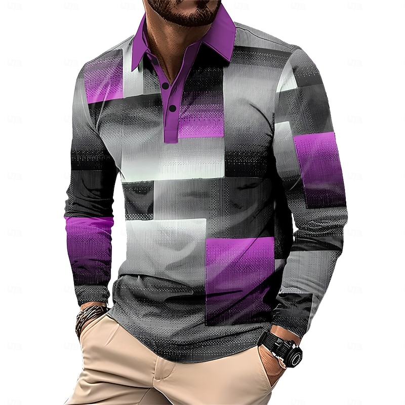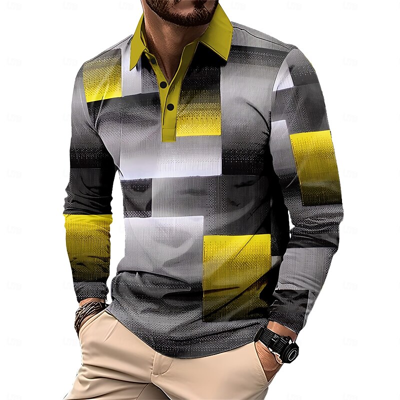 More information about Men's Plaid Polo Shirts Golf Polos Shirts Long Sleeve Polo Shirts Collar Business Casual Formal Vacation Dailywear Outdoor clothing 3D Print Buttons Spring Fall & Winter Black Yellow Red