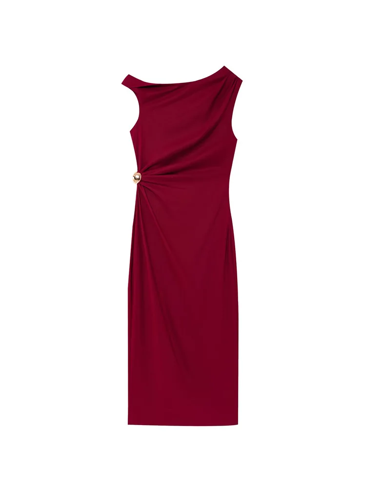 Women Summer Pleated MIDI Dress 2025 Fashion Solid Linen O-Neck Sleeveless Female Elegant Street Tank Dresses Clothing