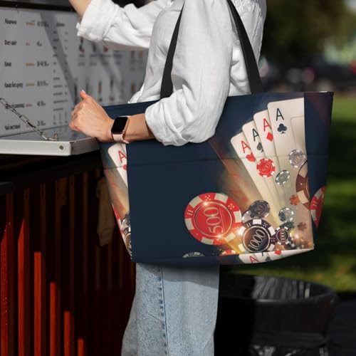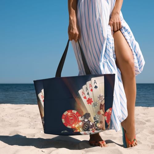 HOT ! Casino Poker Chips Print Large Beach Tote Bag for Women Extra Large Capacity Sandproof Waterproof Pool Bag Suitable for Swimming Pool Gym Groceries Travel