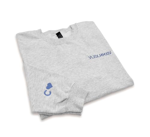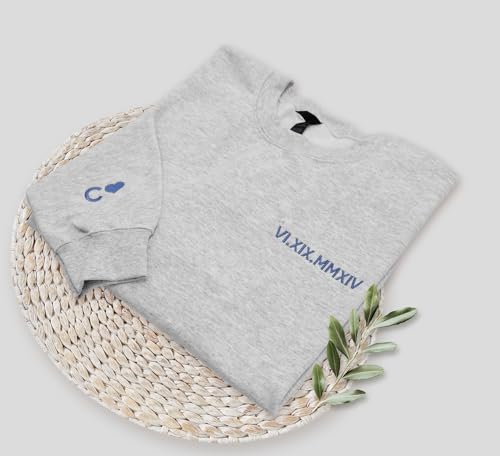 NACRE APPAREL Custom Roman Numeral Embroidered Sweatshirt Hoodie Matching Initial on Sleeve Design Your Own Personalized 2