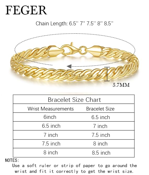 More information about FEGER 14K Gold Double-Row Braid Chain Bracelet for Men and Women Non-Tarnish Bracelets with Lobster Clasp Available in 5 Sizes (6.5''-8.5'')