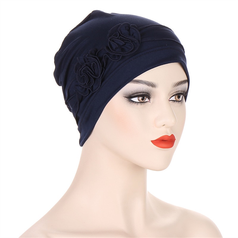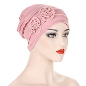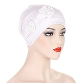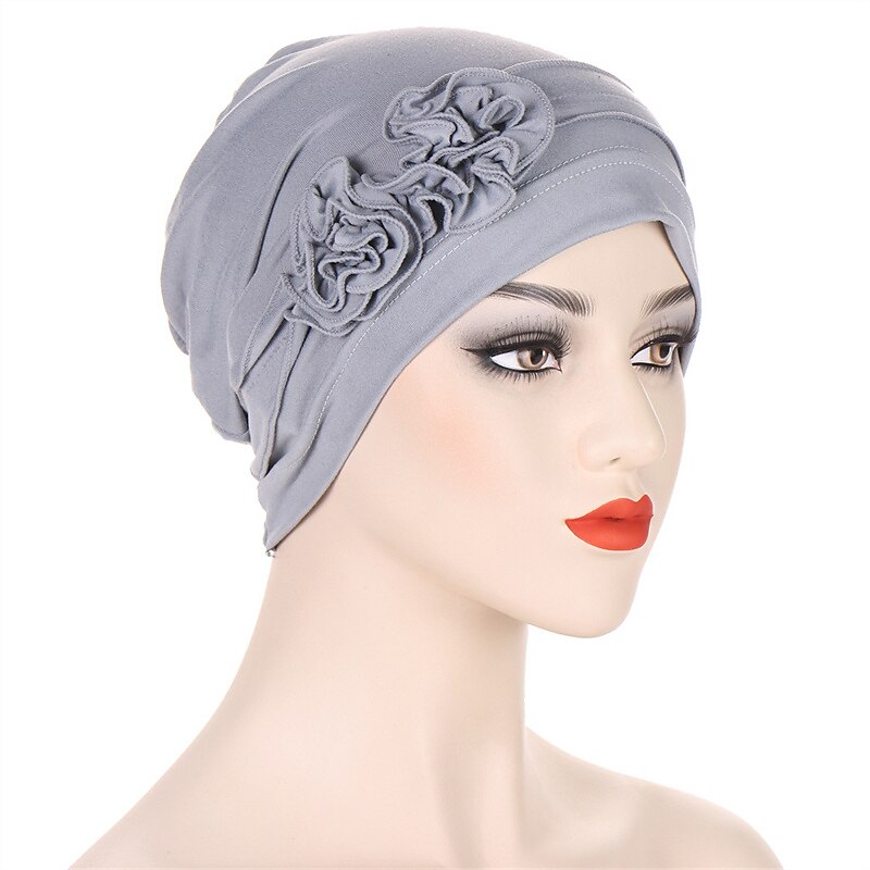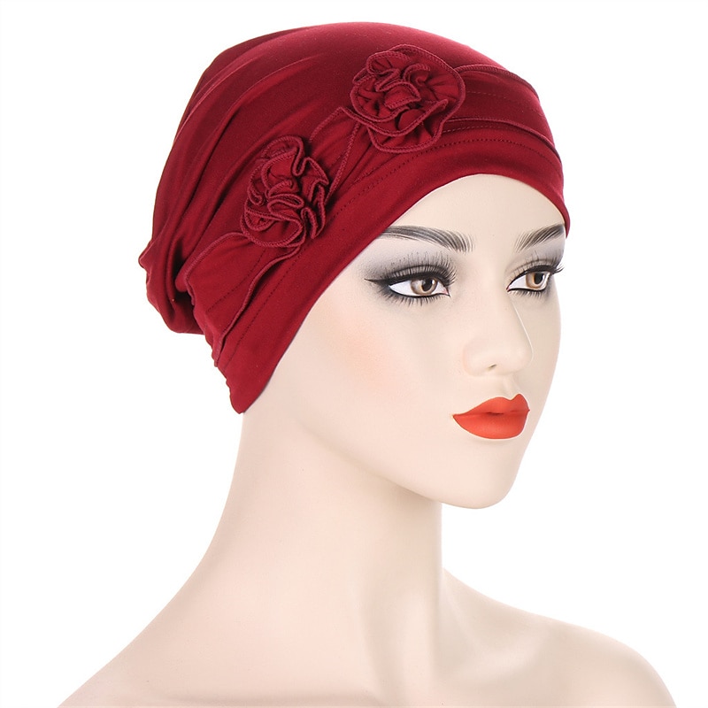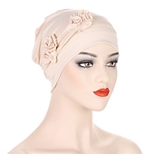 More information about 1pcs Beanie Hat Headwear Turban Covers Two Flower Head Wraps Turban Hat Classic Vintage Women Solid Color Soft Headgear