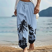 More information about Men's Coconut Tree Linen Pants Pants Trousers Baggy Pants Mid Waist Vintage Outdoor Daily Wear Beach Fall & Winter White Blue Green