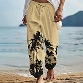 HOT ! Men's Coconut Tree Linen Pants Pants Trousers Baggy Pants Mid Waist Vintage Outdoor Daily Wear Beach Fall & Winter White Blue Green