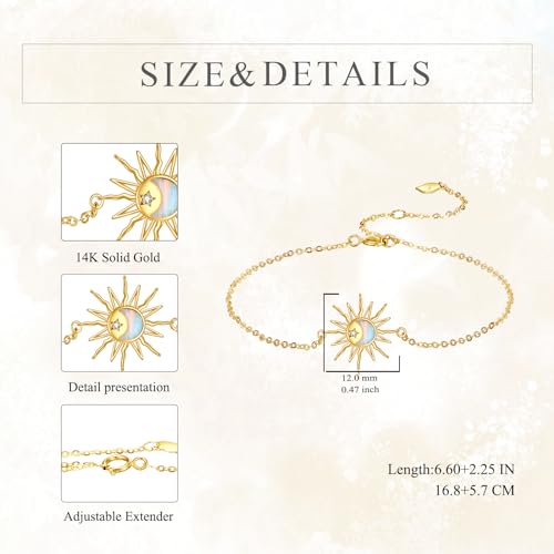 KECHO 14k Real Gold Sun Bracelet for Women Opal Moon Jewelry Birthday Gifts for Women 6