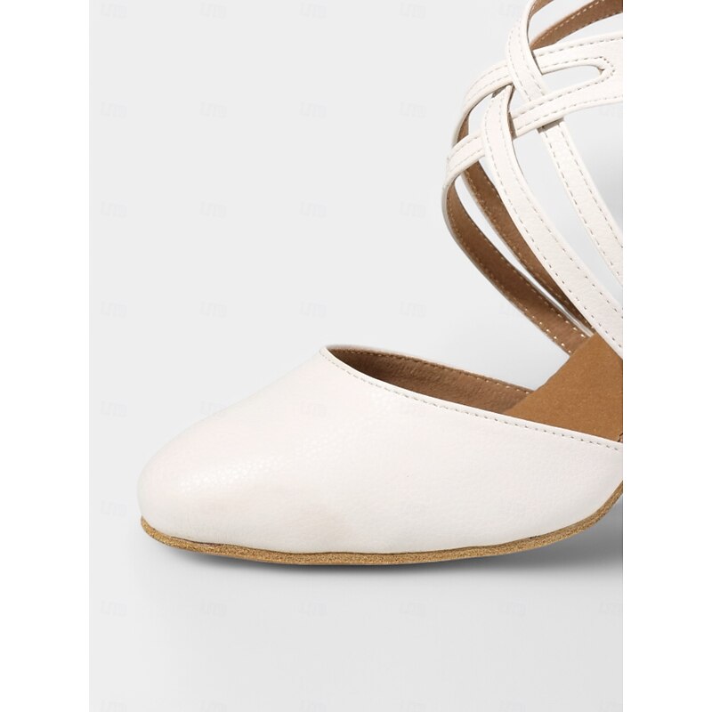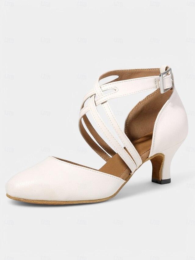 White Satin Dance Shoes with Cross-Strap Design – Mid Heel, Open Toe for Women – Ideal for Weddings, Formal Events, and Dance Competitions 9