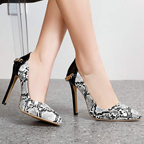 KOKOMOMO Womens Snakeskin Pumps Chain High Heel Pointed Toe Stilettos 6