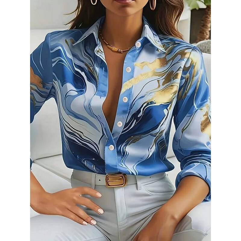 Women's Shirt Work Shirt Graphic Abstract Elegant Stylish Casual Long Sleeve Shirt Collar Regular Tops Work Party Evening Wear Daily Glitter Pink Blue Purple Fuchsia Orange Summer Fall Spring, Fall 2