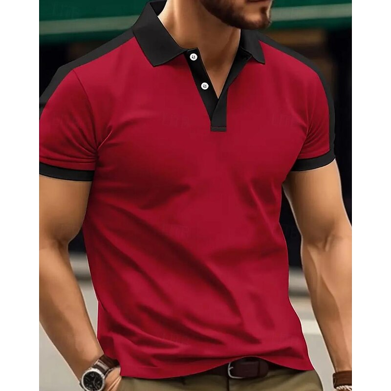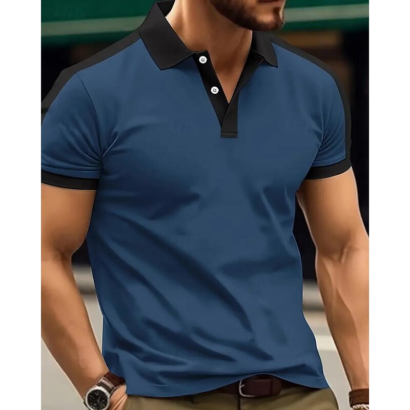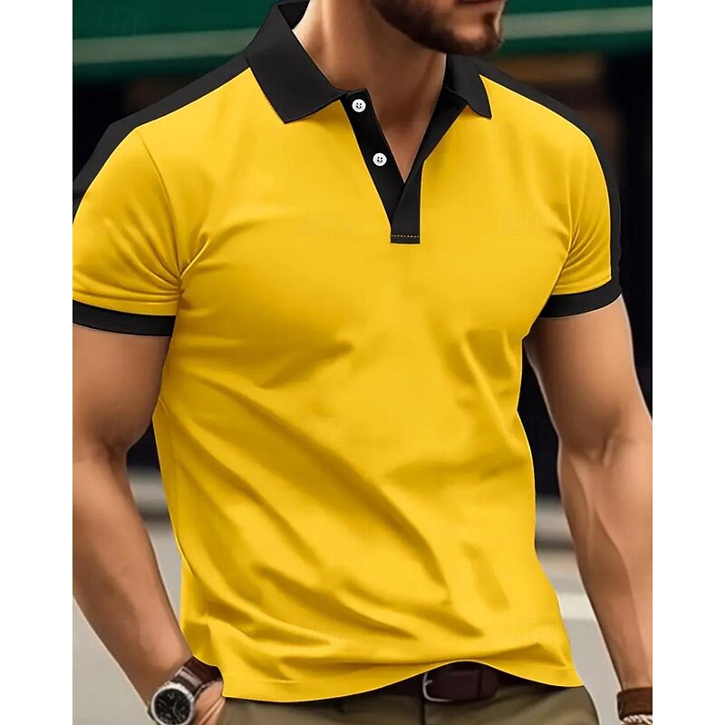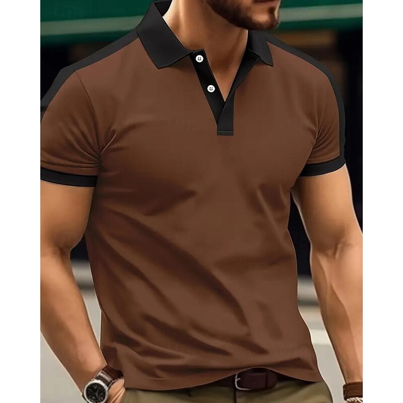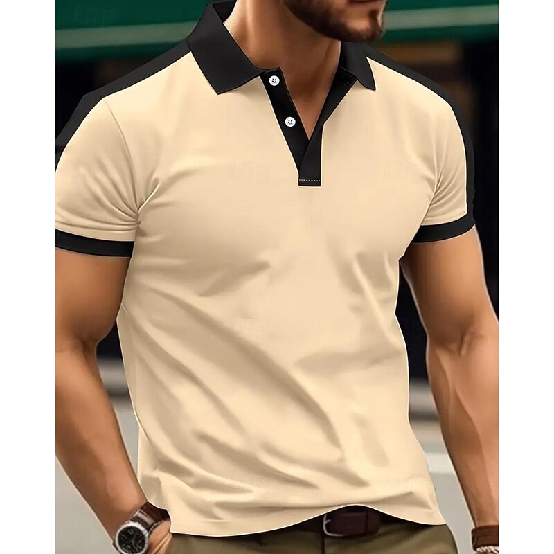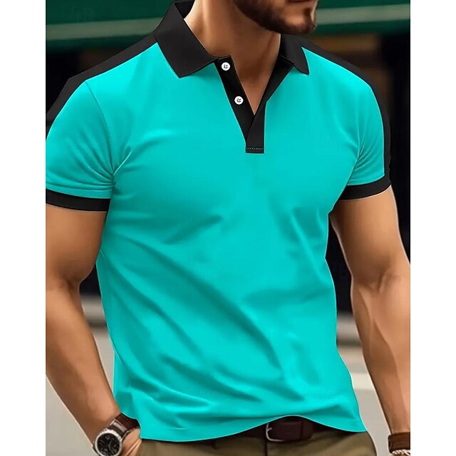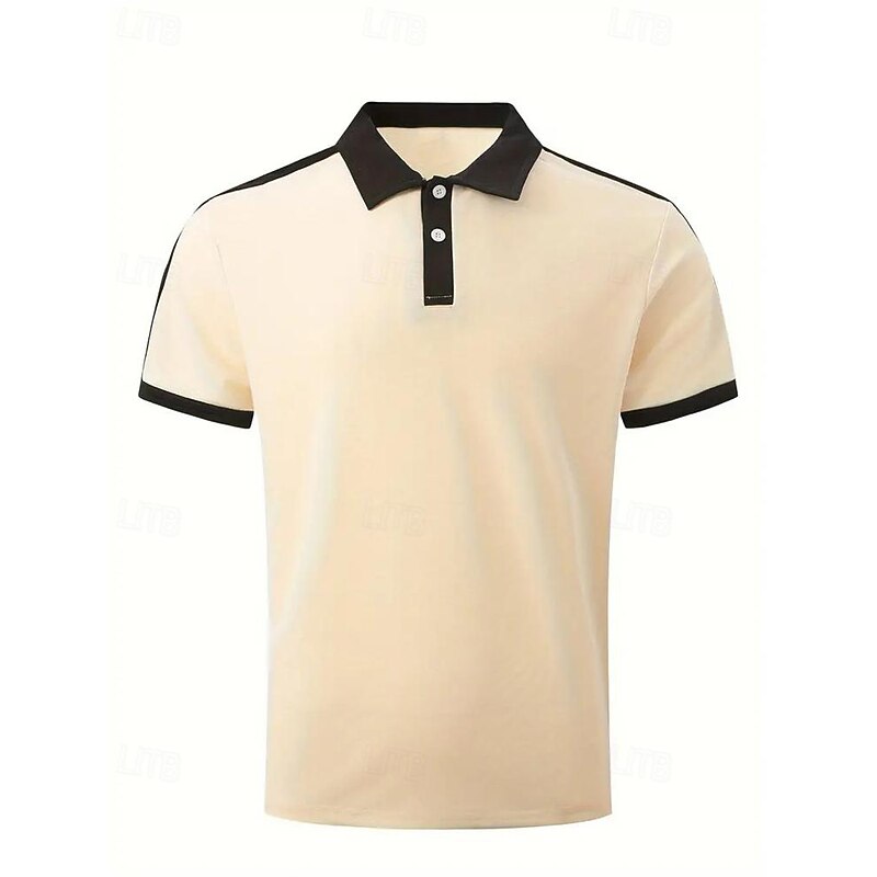 More information about Men's Golf Shirt Golf Polo Work Casual Lapel Short Sleeve Basic Modern Color Block Patchwork Button Spring & Summer Regular Fit Wine Navy Blue sky blue Gold Beige Coffee Golf Shirt