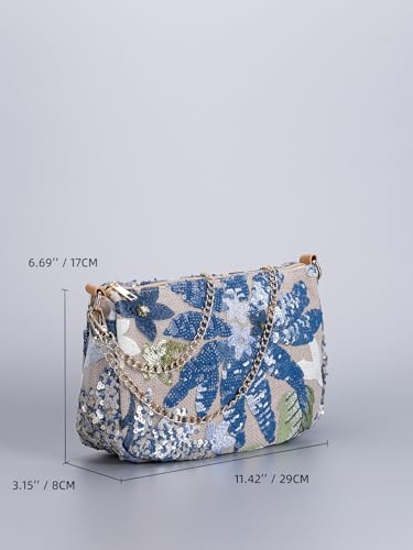 More information about Y2k Sequin Beaded Straw Purse Women Summer Leather Shoulder Bag Floral Embroidery Evening Party Purses