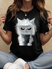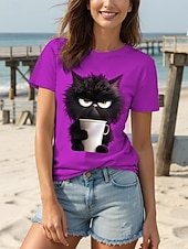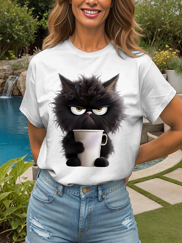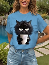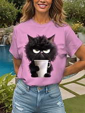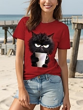 More information about Women's T Shirt Graphic Animal Cat Vintage Stylish Classic Short Sleeve Crew Neck Round Neck Regular Tops Daily Weekend Print Black White Pink Red Blue Summer Spring