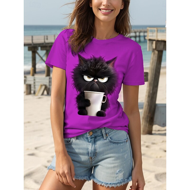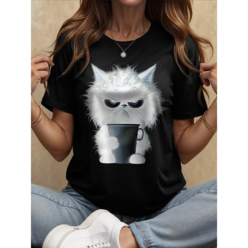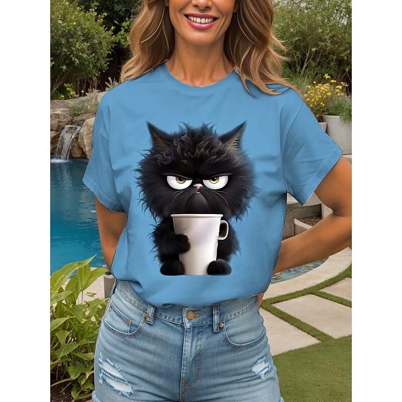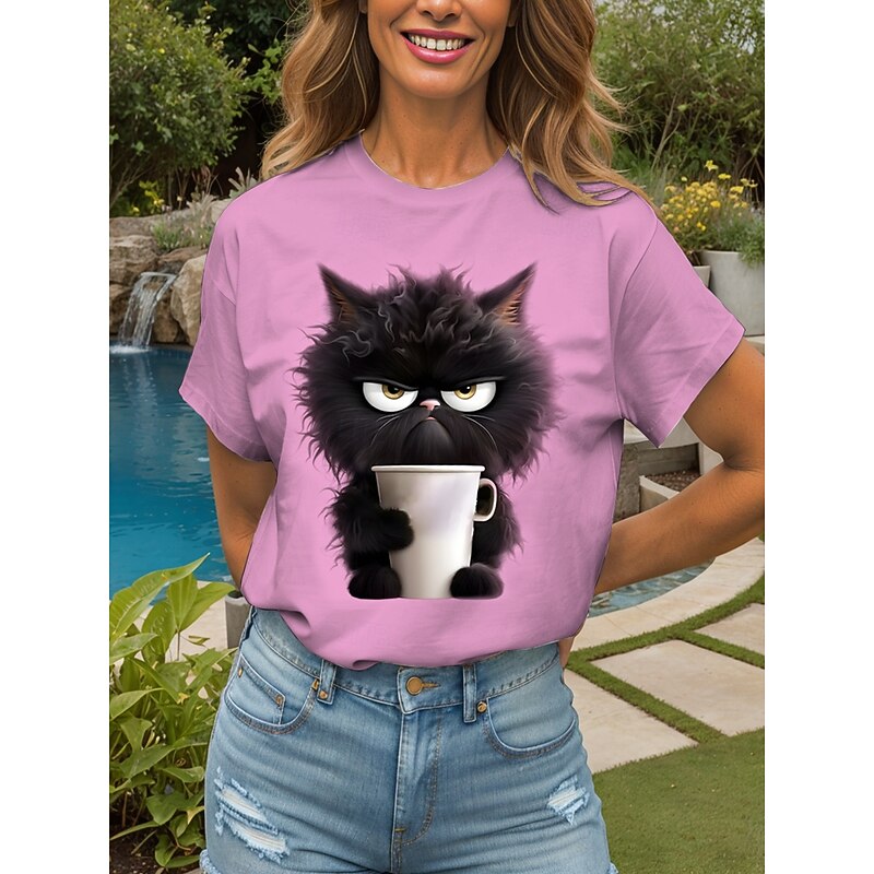 Women's T Shirt Graphic Animal Cat Vintage Stylish Classic Short Sleeve Crew Neck Round Neck Regular Tops Daily Weekend Print Black White Pink Red Blue Summer Spring 14
