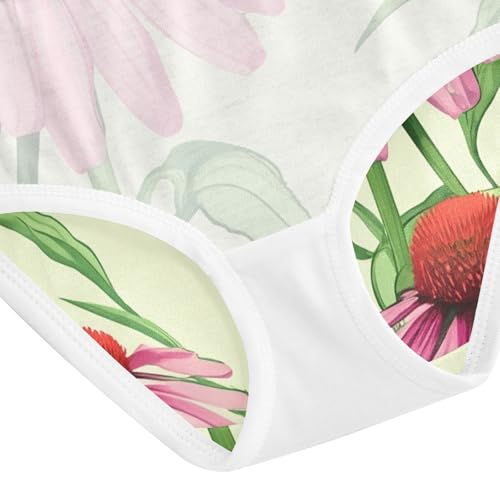 Pink Echinacea Flowers Green Leaves Panties Little Girl Toddler Underwear Floral Cotton Print Briefs Underpants 2t