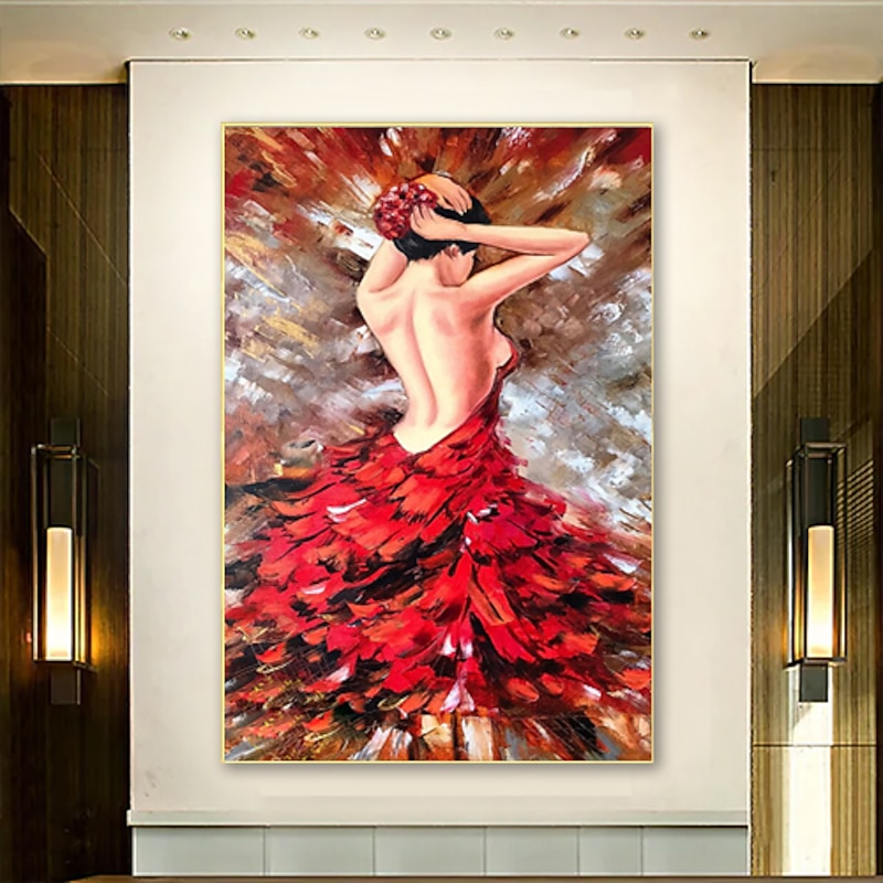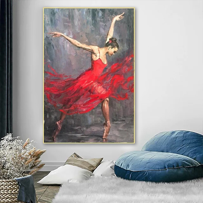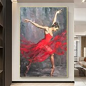 More information about Handmade Hand Painted Ballerina Oil Painting Original Commission Painting Ballet Vertical Wall Art Fine Picture Red Wall Art Room Decor