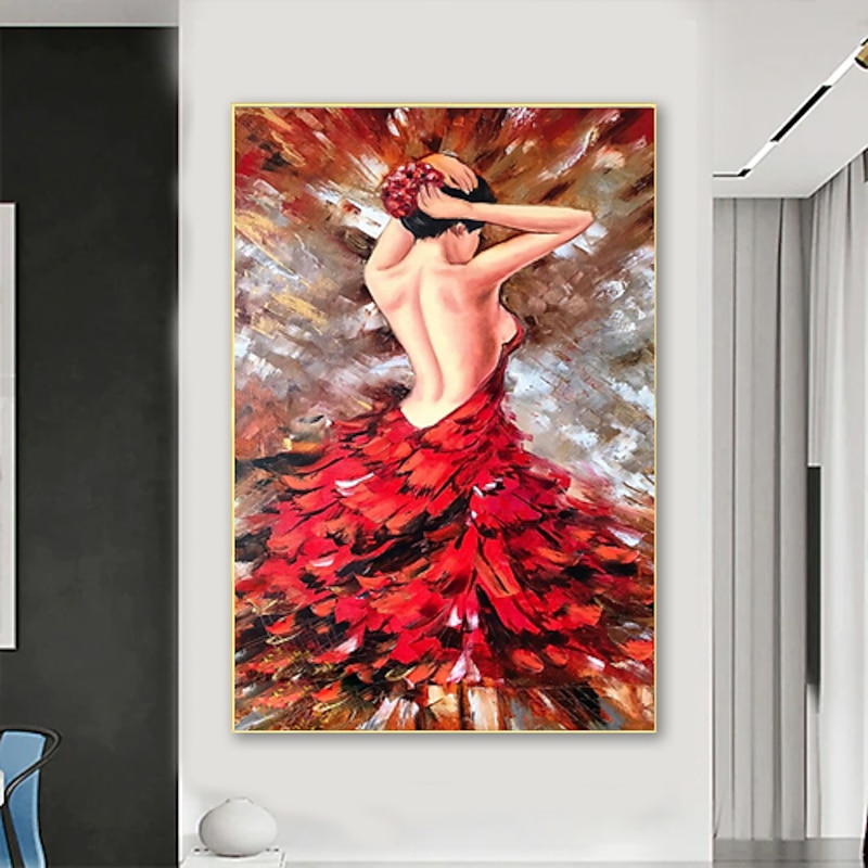 HOT ! Handmade Hand Painted Ballerina Oil Painting Original Commission Painting Ballet Vertical Wall Art Fine Picture Red Wall Art Room Decor