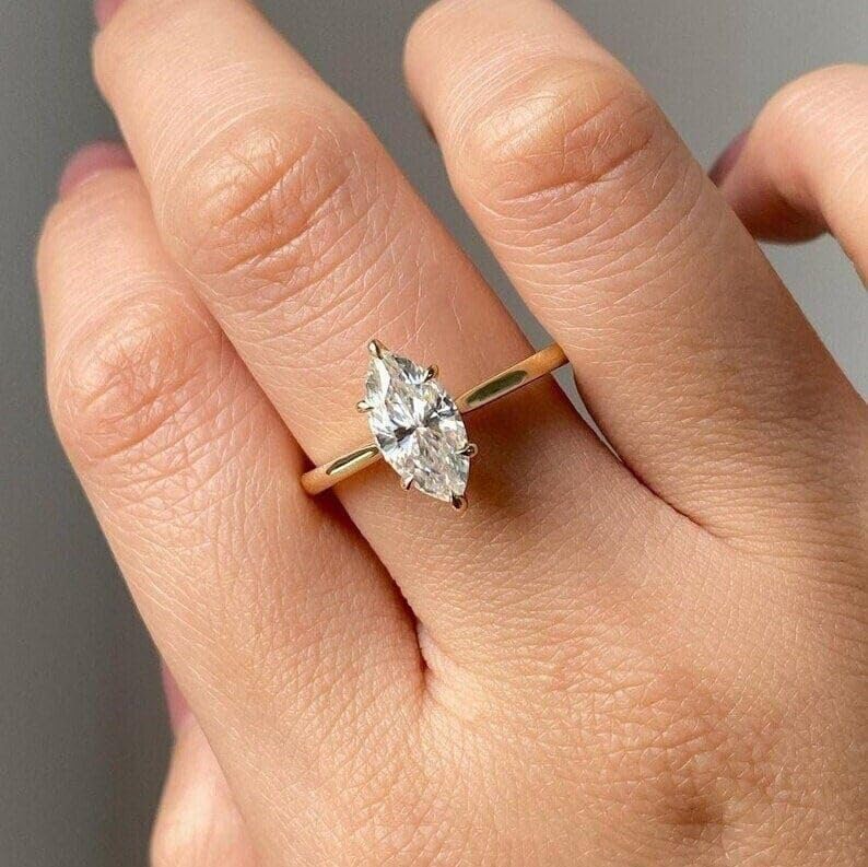 14k solid Gold 2.00 CT Marquise Cut Engagement Ring, Silver Solitaire Wedding Ring, Anniversary Ring, promise Ring 1