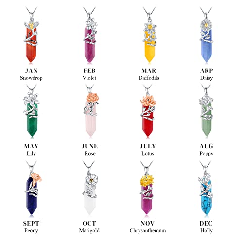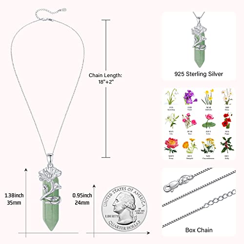 Graduation Gifts Birth Flower Necklace 925 Sterling Silver Birth Month Floral Pendant Necklace with Healing Crystal Flower Jewelry Gifts for Mother Girlfriend 7