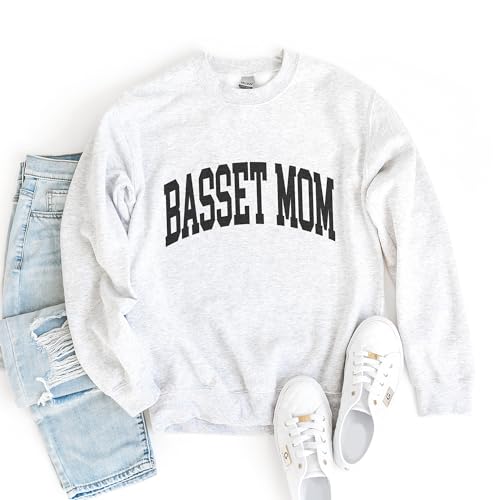 More information about Basset Mom Varsity Sweatshirt, Cute Basset Hound Pet Parent Sweater, Basset Dog Mom Gift, Dog Lover Shirt, Unisex Womens Crewneck Sweatshirt