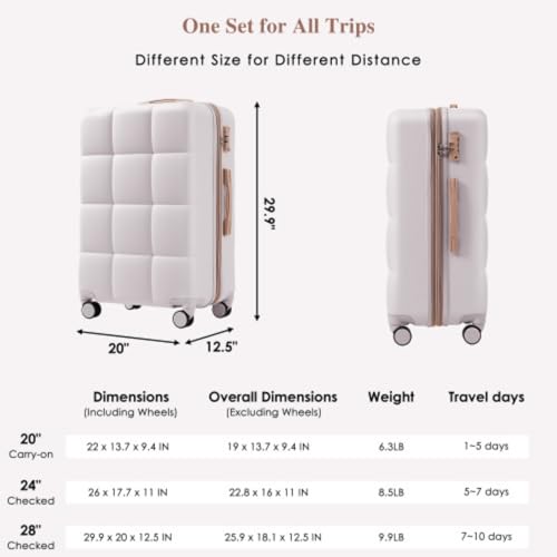 • 【3-piece luggage set】20-inch carry-on luggage comes with a USB charging port (power bank not included), and is expandable to 24-inch, 28-inch, adding 25% more space capacity to the hard-shell luggage.
