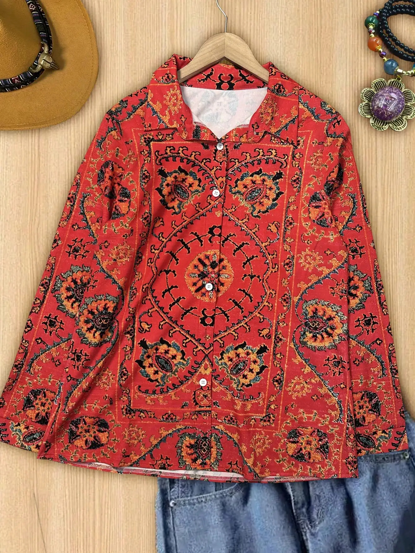 Women's Casual Commuter Shirt Western Ethnic Style Geometric Print Long Sleeve Women's Shirt