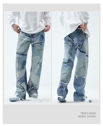 More information about Jeans Pants Trousers Denim Spring and Autumn Men's High Street Splicing Patch Loose Wide Leg Floor