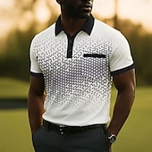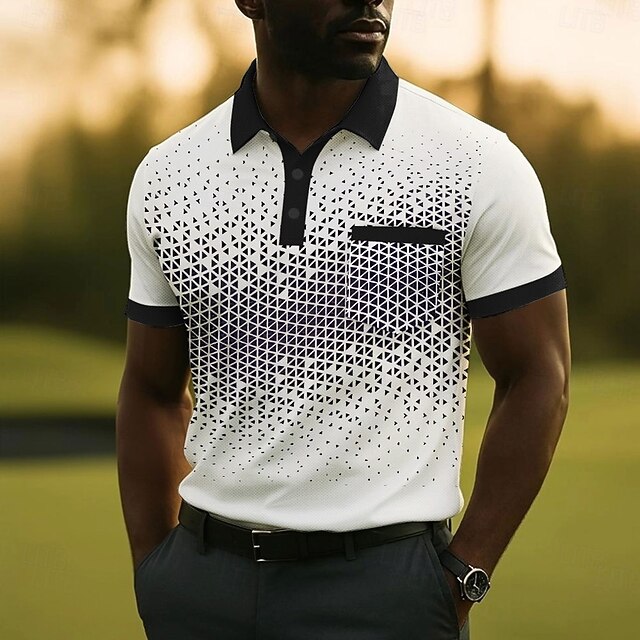 More information about Men's Geometric Pattern Polo Short Sleeve Polo Shirts Collared Shirts Business Casual Outdoor Athleisure Daily Wear Buttons Pocket Summer White Blue Purple