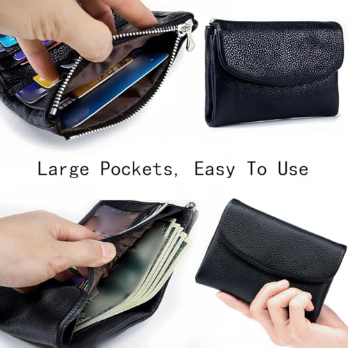 • Slim & Spacious:Measuring just 5.3" x 3.9", 1 large bill slot, 6 card slots, 2 ID windows, 2 zippered coin pockets, and a zipper! this compact pebble leather wallet holds cards, cash, ID, keys, and even a mini mirror.The perfect everyday carry for women who like to travel light.All-in-one organization.perfect for work, travel, or a night out.