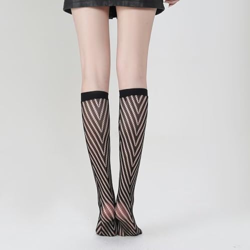 More information about 1 pair of women's calf socks with geometric pattern woven fishing net socks