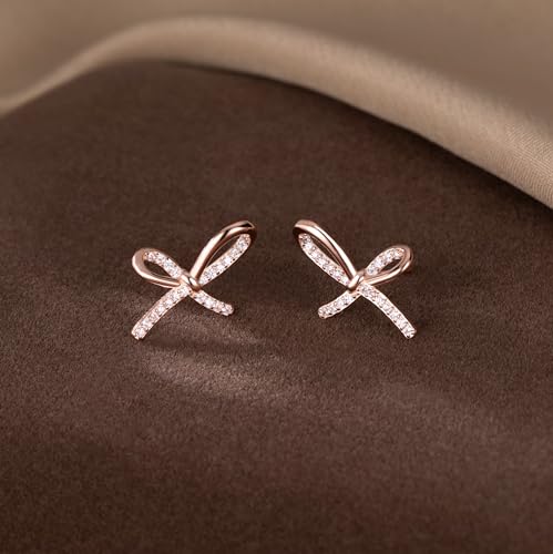 Reffeer Solid 925 Sterling Silver Bow Studs Earrings for Women Teens CZ Bow Post Studs Earrings 5