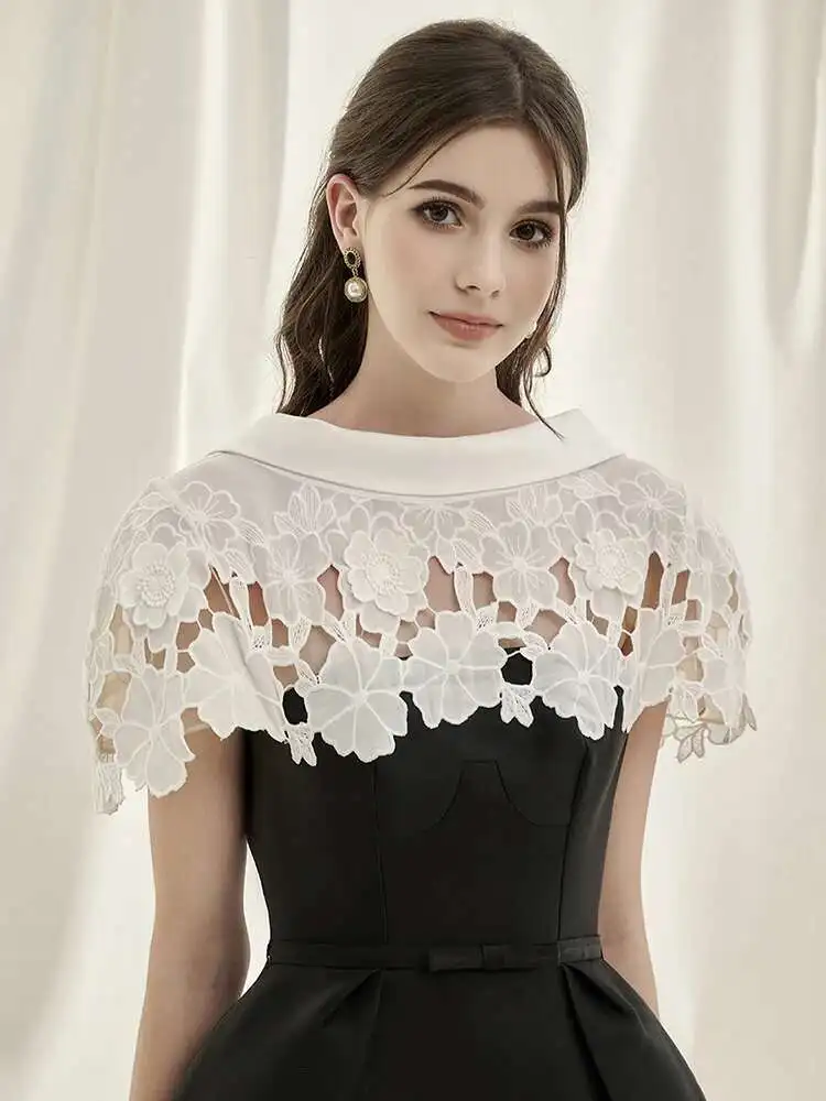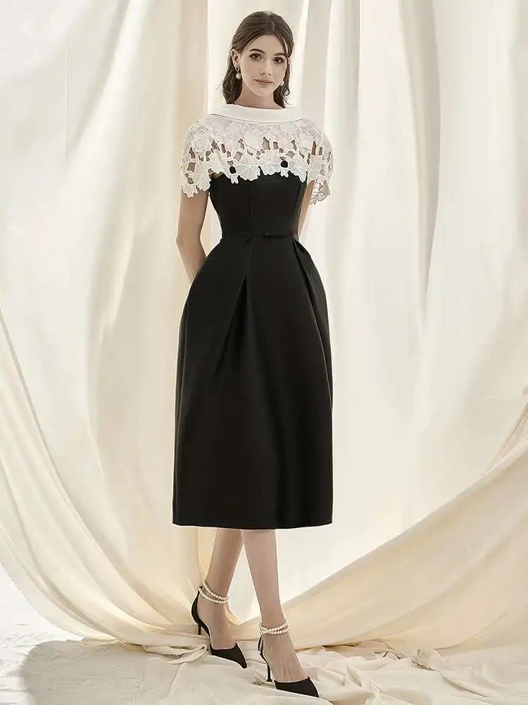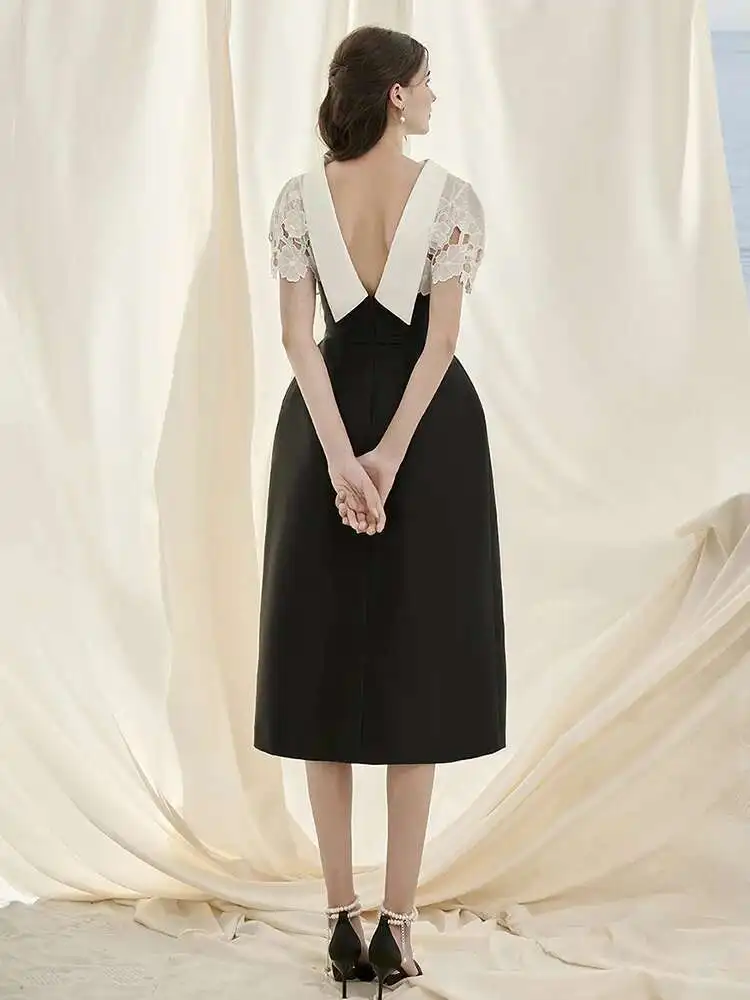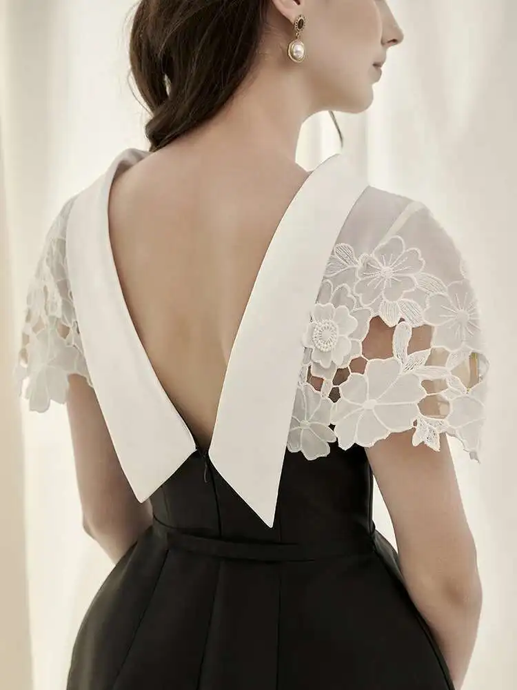 DEAT 2025 Summer Women's Lace Crochet Backless Dress Fashion Trendy Sleeveless Patchwork High Waist Dresses Female New 15C119