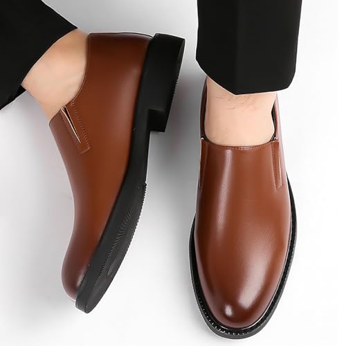 Men's Leather Slip-on Low Block Heel Business Loafers Fashion Round Toe Chunky Heel Dress Shoes Comfortable Driving Outdoor Casual Work Shoes 7