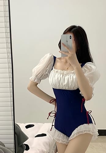 More information about JHTPSLR One Piece Swimsuit for Teen Girls Puffer Sleeve Ruffle Lace Back Up Bathing Suit Balletcore Princess Swimwear