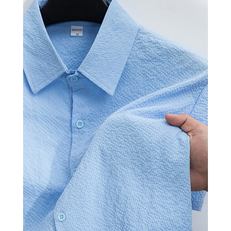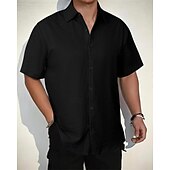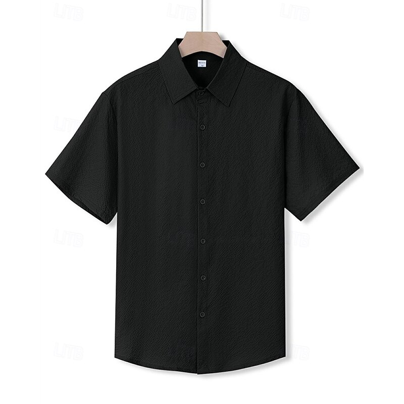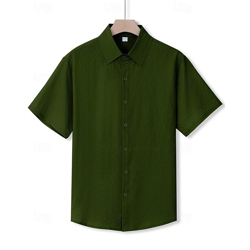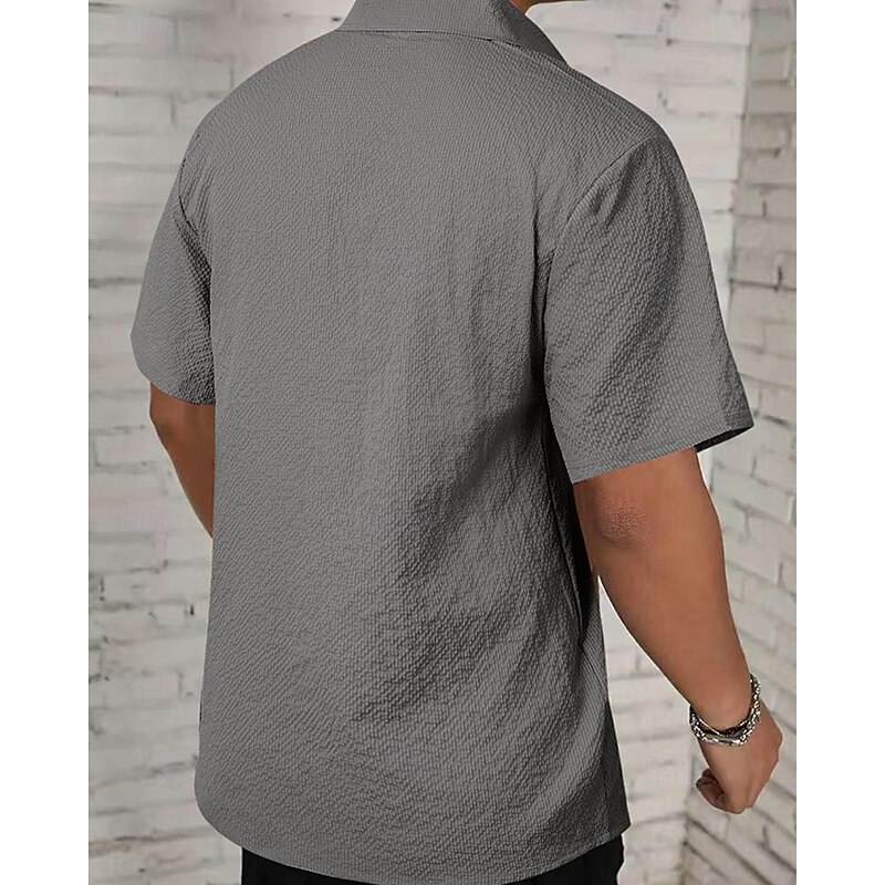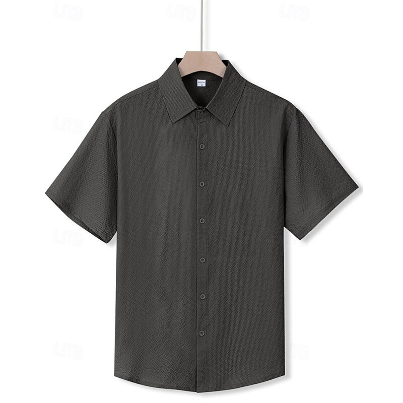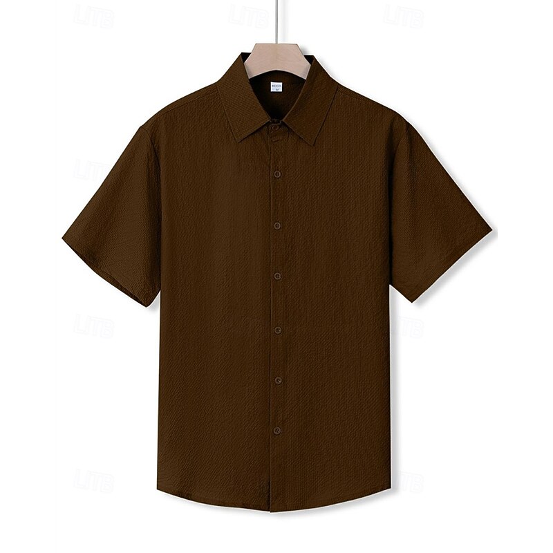 More information about Men's Shirt Summer Shirt Casual Shirt Beach Shirt Button Up Shirt Dark Brown Black Green Dark Gray Light Blue Short Sleeve Plain Lapel Vacation Hawaiian Jacquard Clothing Apparel Polyester Fashion