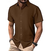 Men's Shirt Summer Shirt Casual Shirt Beach Shirt Button Up Shirt Dark Brown Black Green Dark Gray Light Blue Short Sleeve Plain Lapel Vacation Hawaiian Jacquard Clothing Apparel Polyester Fashion 26