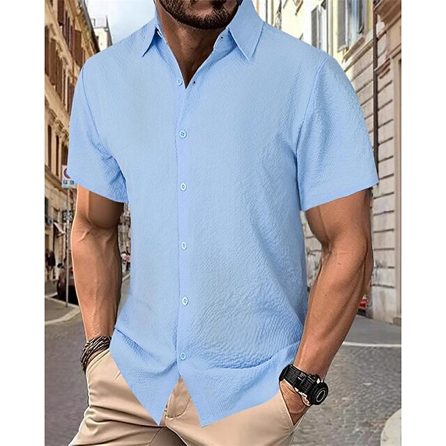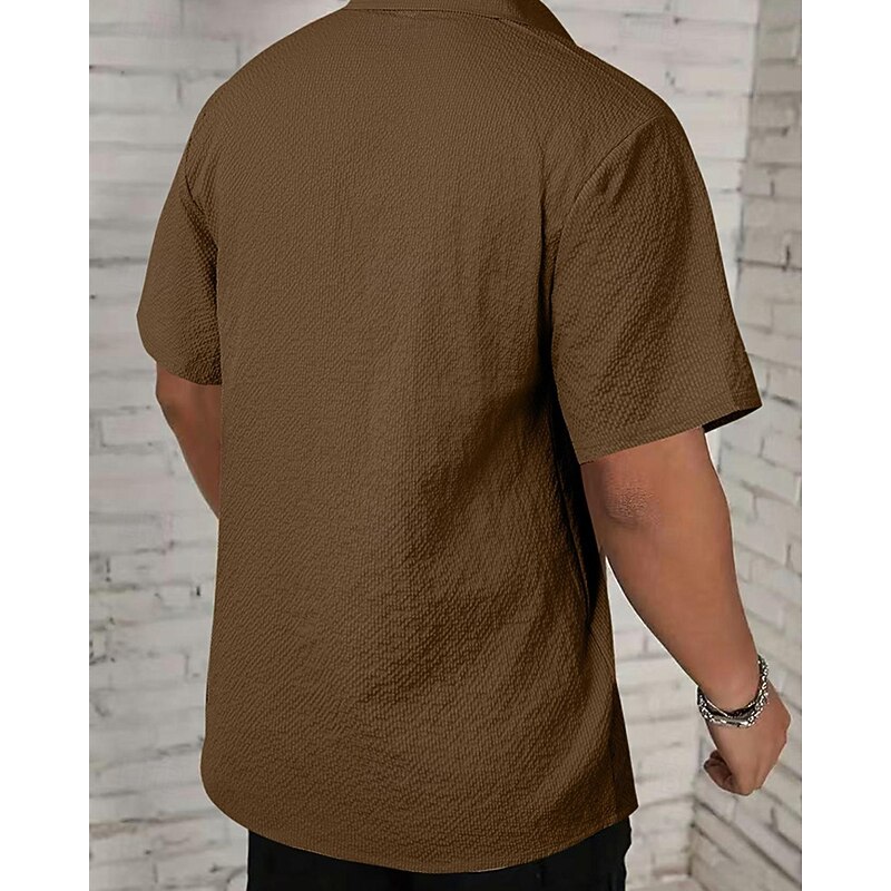 Men's Shirt Summer Shirt Casual Shirt Beach Shirt Button Up Shirt Dark Brown Black Green Dark Gray Light Blue Short Sleeve Plain Lapel Vacation Hawaiian Jacquard Clothing Apparel Polyester Fashion 7