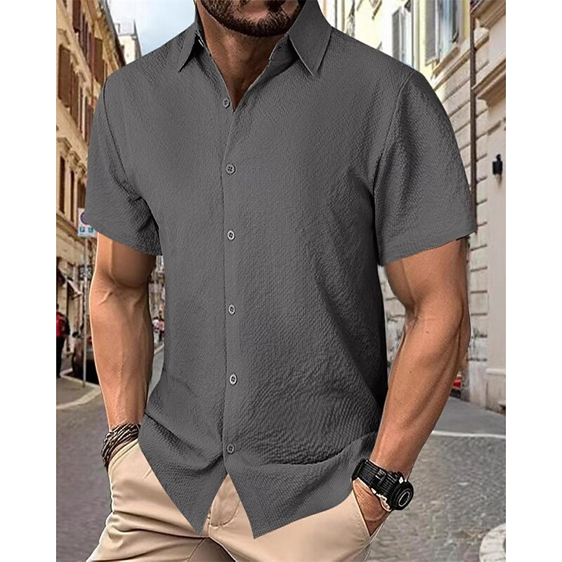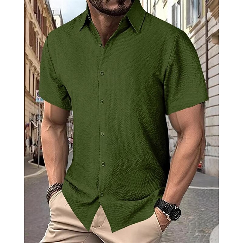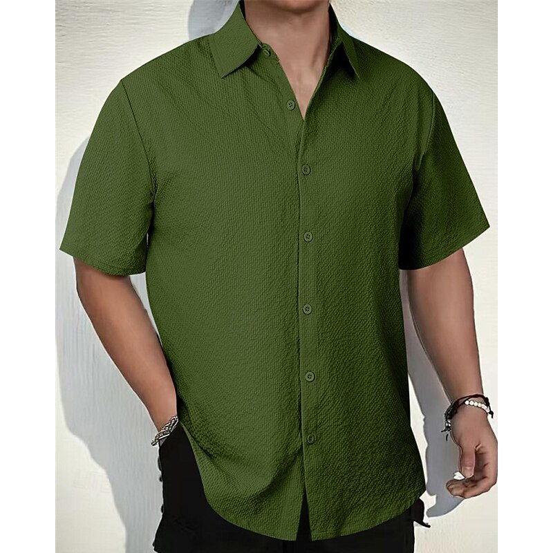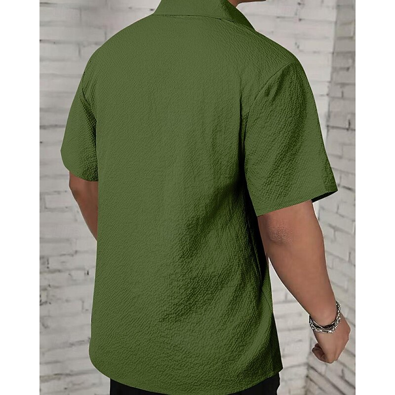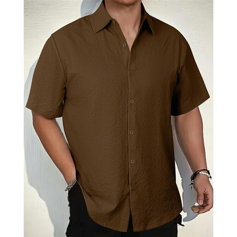 Men's Shirt Summer Shirt Casual Shirt Beach Shirt Button Up Shirt Dark Brown Black Green Dark Gray Light Blue Short Sleeve Plain Lapel Vacation Hawaiian Jacquard Clothing Apparel Polyester Fashion 24