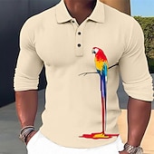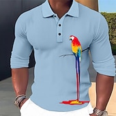 More information about Men's Parrot Hawaiian Polo Shirts Golf Shirt Long Sleeve Polo Shirts Collared Shirts Casual Funny Beach Wear Vacation Wear Party Outfits 3D Print Buttons Black White Blue