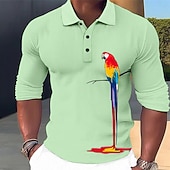 Highlights [Fabric] Expertly crafted from a breathable and soft cotton blend, this men's polo shirt ensures comfort and flexibility, making it perfect for days when you're on the go. The fabric's textured finish lends an air of refinement to this casual piece. [Fit] Tailored in a modern slim fit, the polo shirt contours to the body, offering a sleek silhouette that's neither too loose nor too tight. Its classic polo collar and three-button placket contribute to the timeless appeal. [Design Highlights] The shirt features an eye-catching 3D parrot print that brings a burst of color against the subtle base, infusing the piece with a playful artistic flair. Long sleeves add versatility, accommodating various seasons. [Occasions] An ideal choice for a variety of settings, from fun beach outings and relaxed vacations to lively parties. This shirt effortlessly combines classic style with a contemporary twist, making it suitable for both laid-back and festive environments. [Size Range] Available in a wide range of sizes from S to 5XL, this shirt accommodates a broad spectrum of body types, ensuring you find the perfect fit for your style and comfort needs.