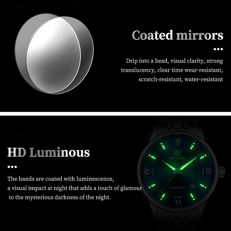 OLEVS Men Mechanical Watch Minimalist Fashion Business Wristwatch Automatic Self-winding Luminous Calendar Waterproof Steel Watch 14