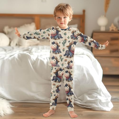 Pajama Sets Long Sleeve Cowboy Donkey Cactus Desert Soft Comfy Sleepwear 2 Piece PJS 3-8T 2