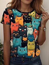More information about Women's T Shirt Graphic Animal Vintage Stylish Casual Short Sleeve Crew Neck Regular Tops Daily Weekend Print White Blue Green Summer
