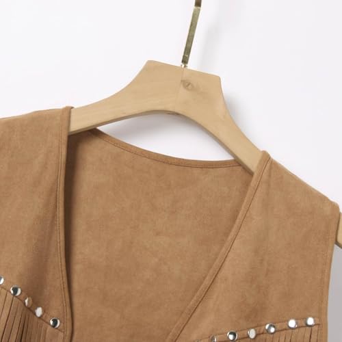 More information about Men's Sleeveless V Neck Western Hippie Faux Suede Vest Fringe Trim Open Front Studded Cowboy Jacket Tassel Tops