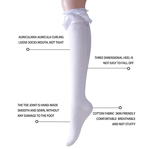 SEMOHOLLI Women Girl's Fashion Knee High Socks With Bow Lace Ruffle Trim Cute Cotton Socks 6