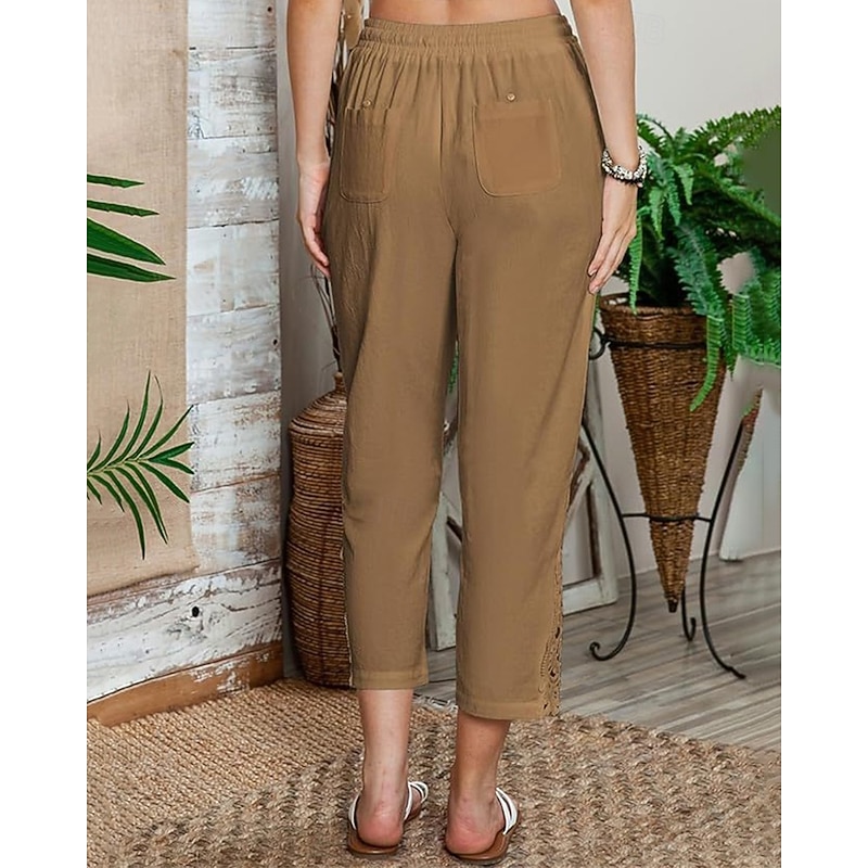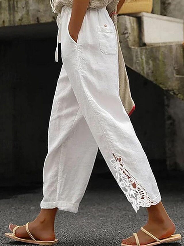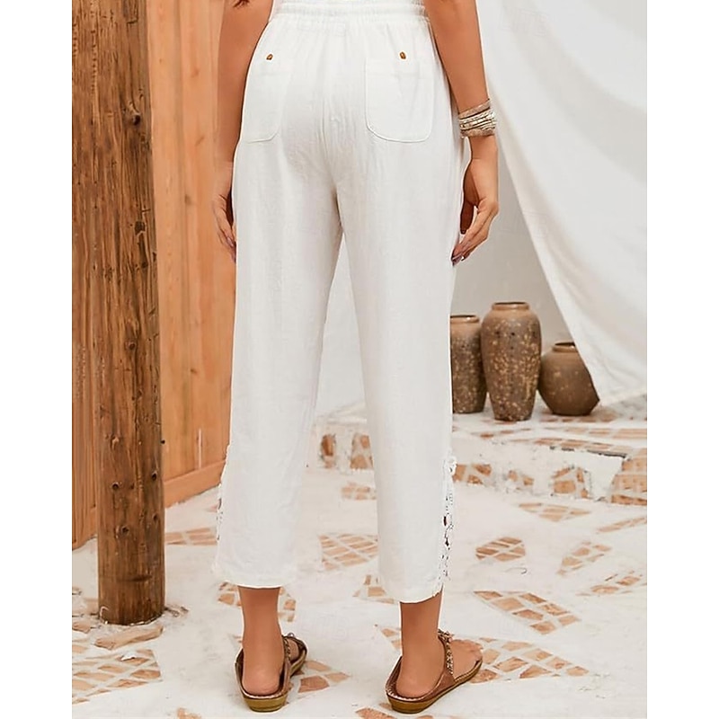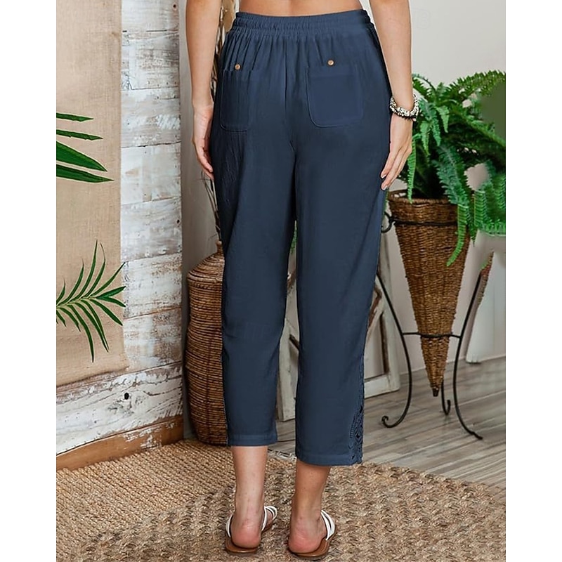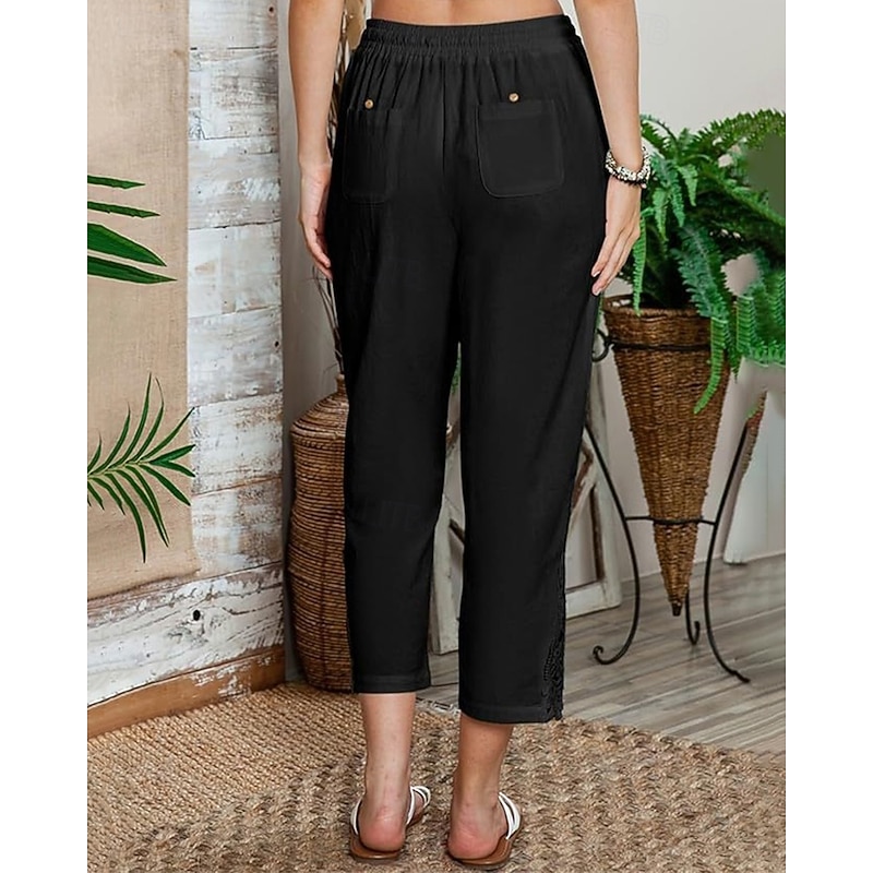 More information about Women's Poly-Cotton Linen Texture Pants Cropped Pants Fashion Streetwear Comfort Ankle-Length Mid Waist Plain Lace Comfy Comfortable Street Daily Wear Going out Black White Blue Green Summer Regular