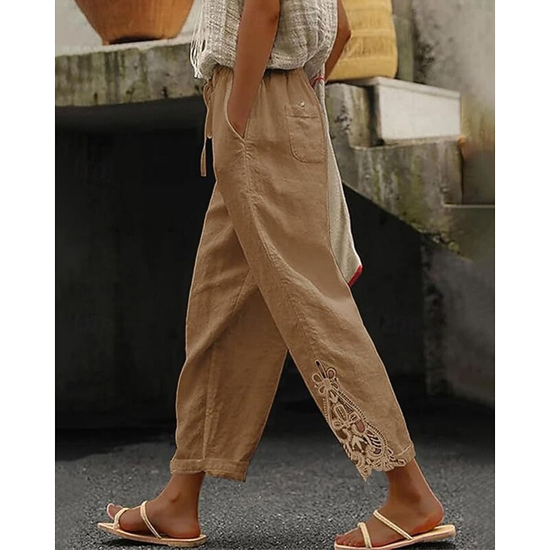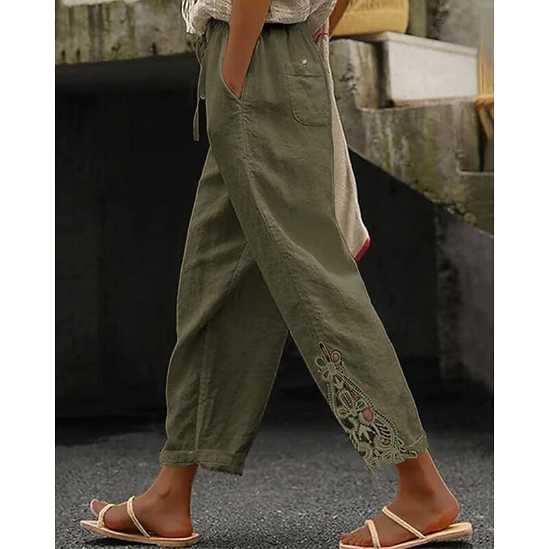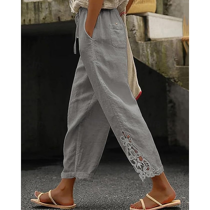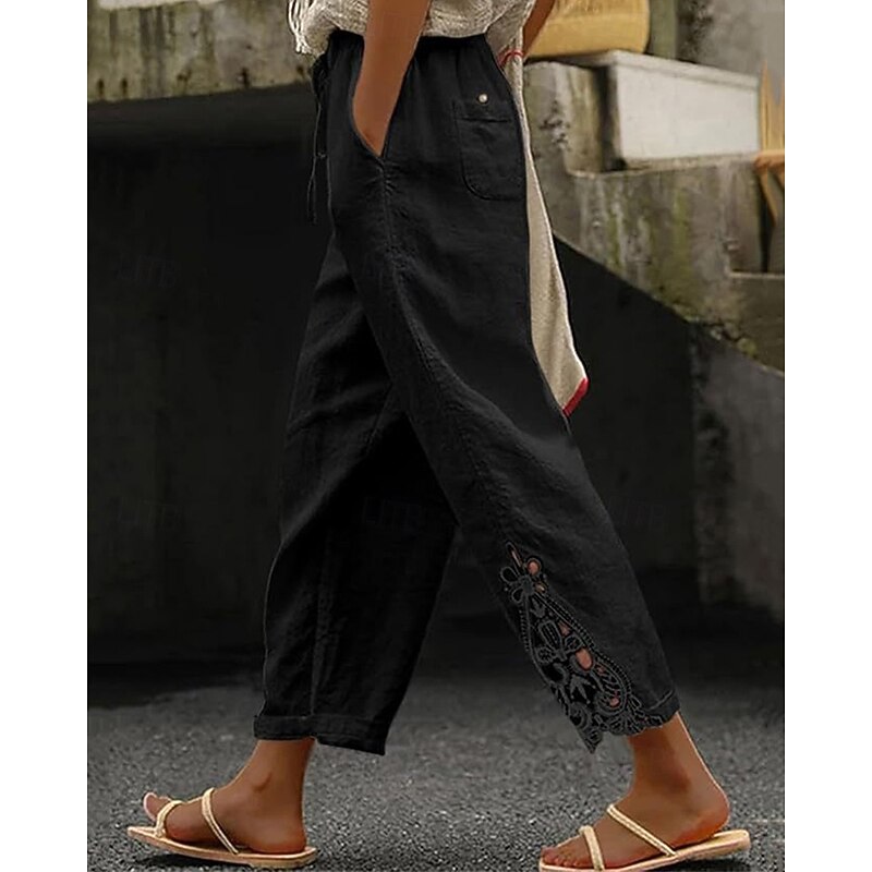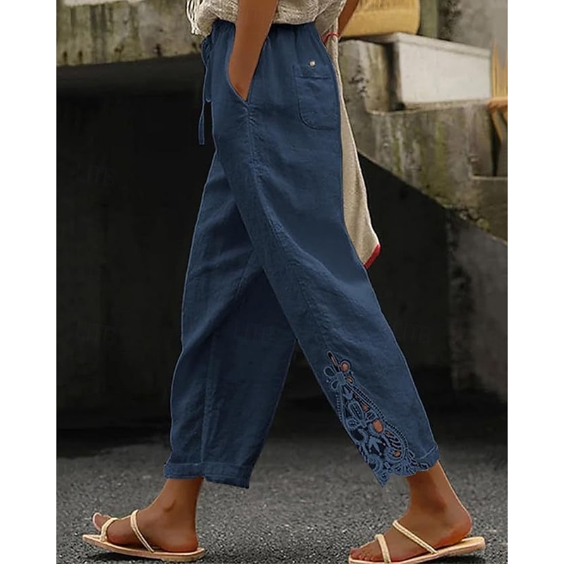 More information about Women's Poly-Cotton Linen Texture Pants Cropped Pants Fashion Streetwear Comfort Ankle-Length Mid Waist Plain Lace Comfy Comfortable Street Daily Wear Going out Black White Blue Green Summer Regular