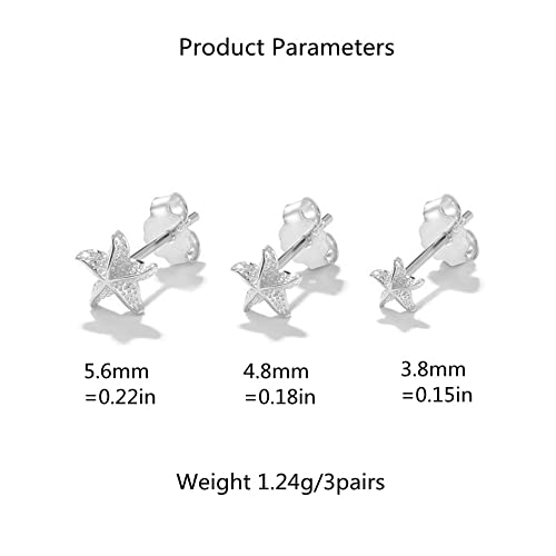 HOT ! 3 Pairs Tiny Starfish Stud Earrings Sterling Silver Set for Women Girls Cute Star Cartilage 20g Studs Tragus Post Pin Hypoallergenic Piercing Body Jewelry Dainty Gifts