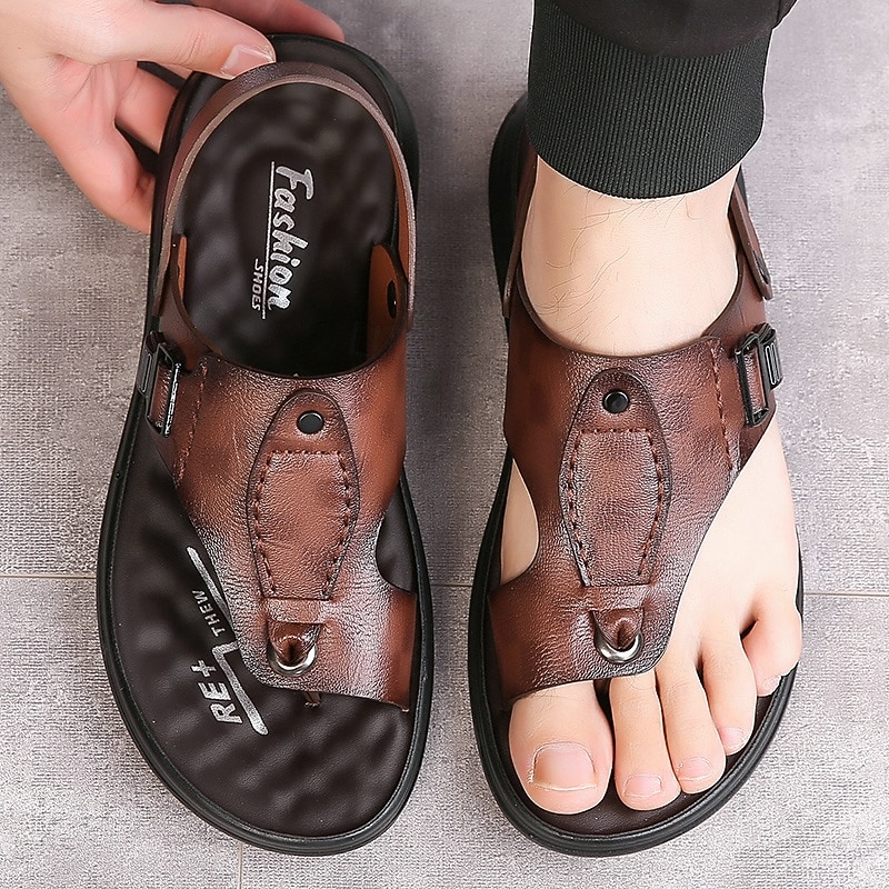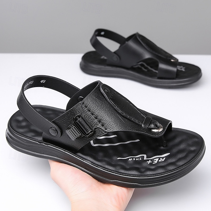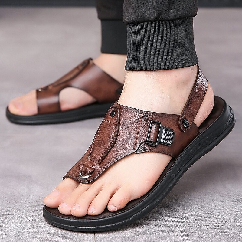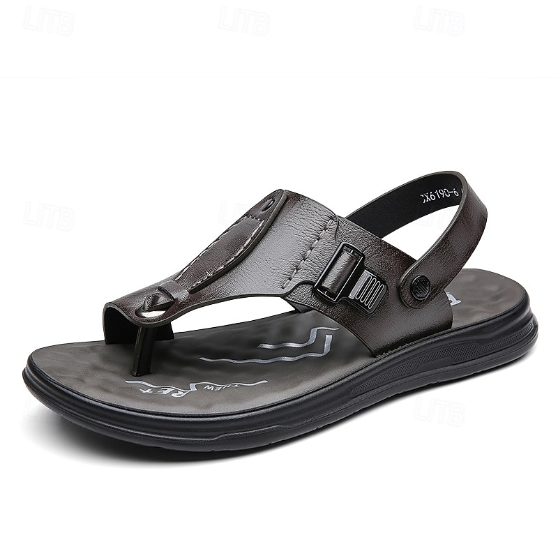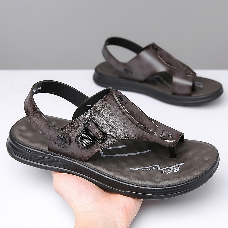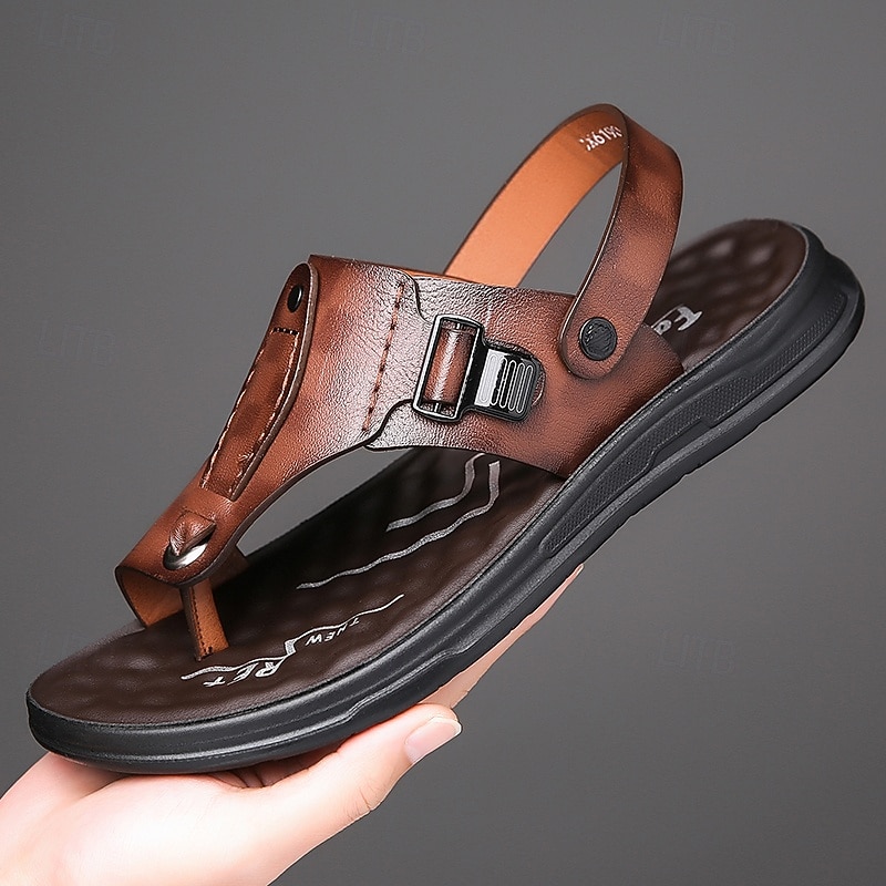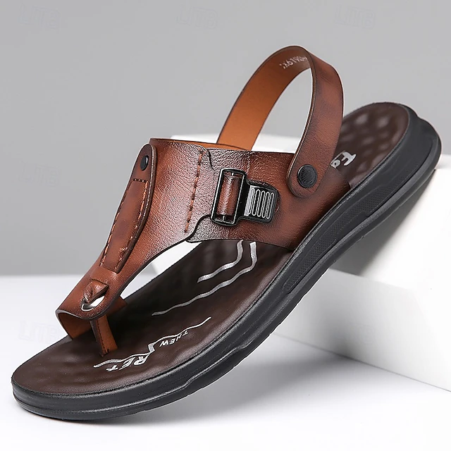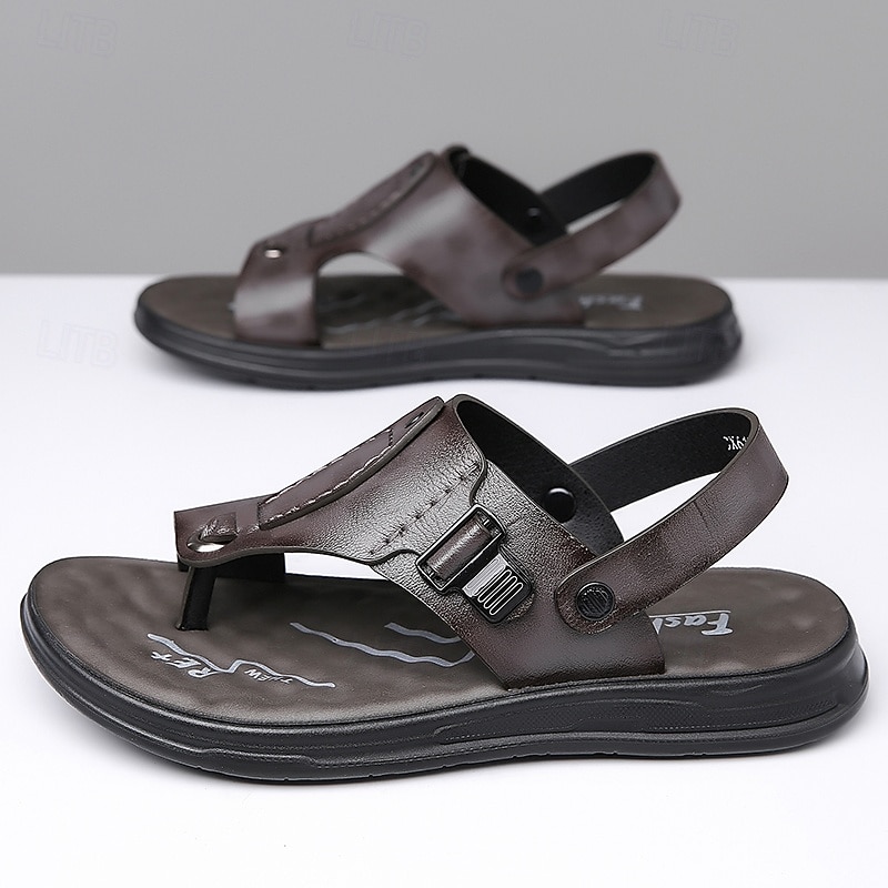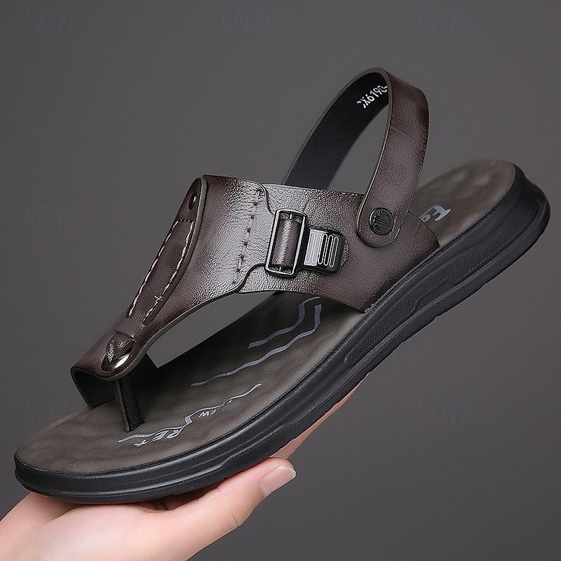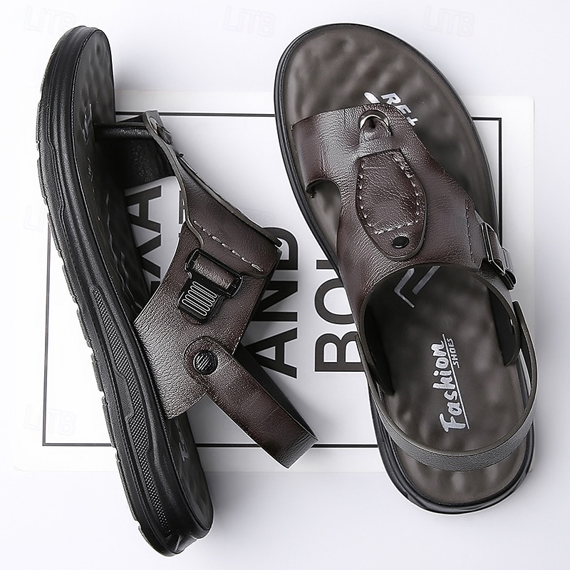HOT ! Men's Brown Faux Leather Sandals Retro Buckle Strap Design with Arch Support Perfect for Daily Walking Outdoor Wear and Vacation Travel