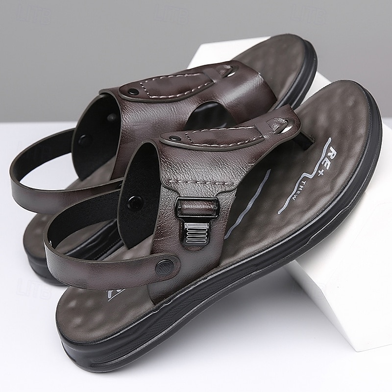Men's Brown Faux Leather Sandals Retro Buckle Strap Design with Arch Support Perfect for Daily Walking Outdoor Wear and Vacation Travel 1